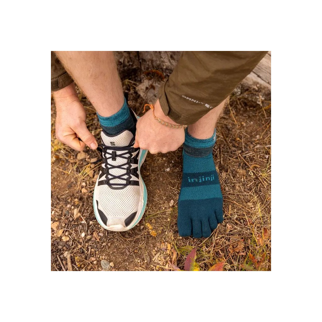 Prstové ponožky Trail Mini-Crew sú stvorené do náročného terénu. Pevnejší úplet a vyšší strih poskytujú ochranu pred nečistotami a stabilitu na chodníkoch i trailoch.