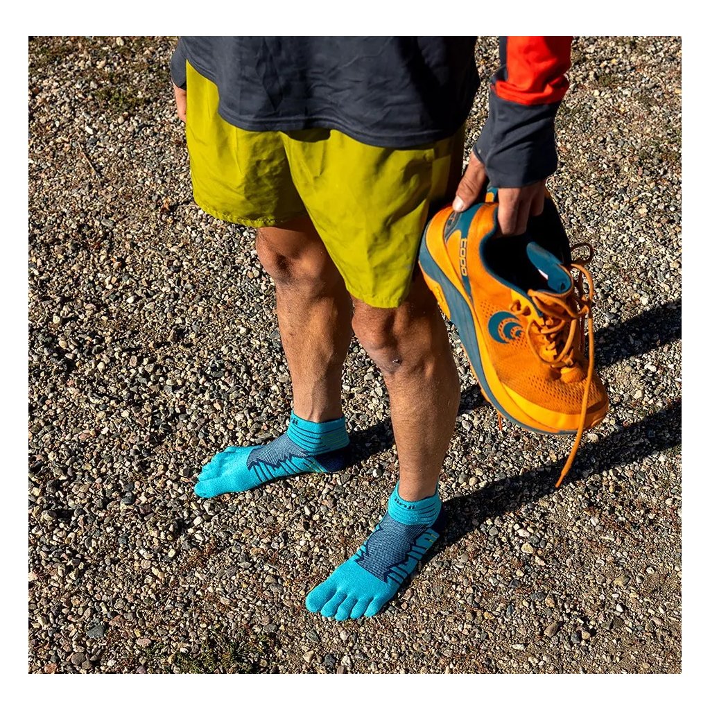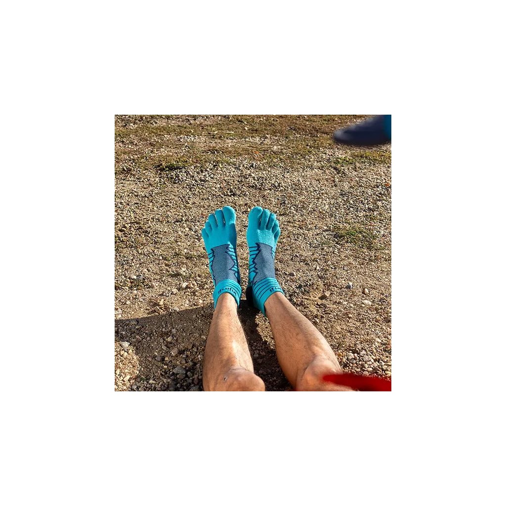 Extra hrubé froté polstrovanie v oblasti chodidla a prstov tlmí nárazy pri behu na asfalte aj trailoch, zatiaľ čo vlákna odvádzajúce vlhkosť udržujú chodidlá v suchu. Oddelené prsty zabraňujú vzniku pľuzgierov a podporujú prirodzené rozloženie prstov. Výška Mini-Crew siaha nad členok a zabraňuje vnikaniu nečistôt, čím zaisťuje bezpečné a pohodlné nosenie bez odierania.