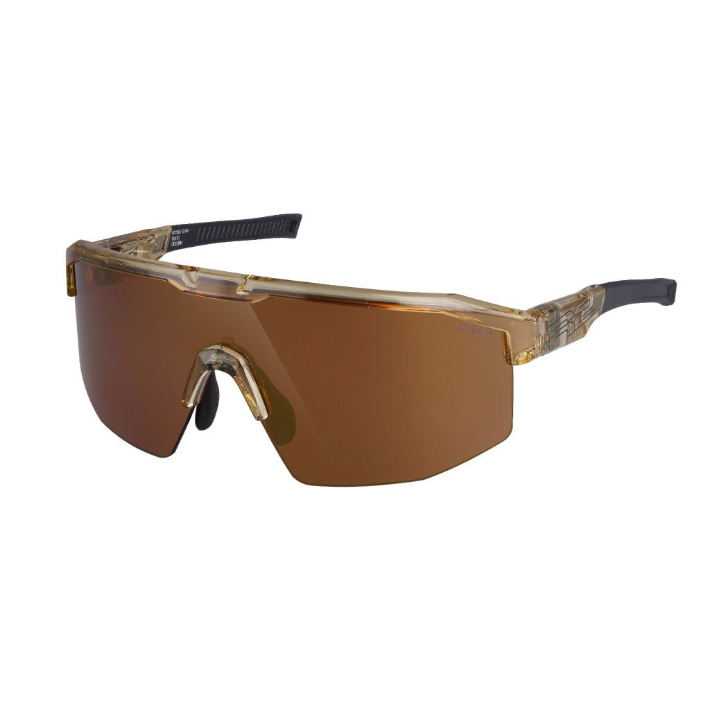 Jantárový rám s lesklým kryštalickým povrchom v kombinácii s medeným chrómom šošovky vytvára výrazný a moderný dizajn, ktorý funguje nielen pri výkone, ale aj ako štýlový doplnok.